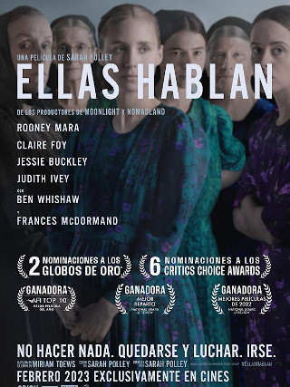 Women talking aficheEllas hablan recogió el Oscar 2023 en la categoría mejor guion adaptado; debió competir con Sin novedad en el frente (2022, Edward Berger), Puñales por la espalda: El misterio de Glass Onions (2022, Rian Johnson), Top Gun: Maverick (Joseph Kosinski)  y Living  (2022, Oliver Hermanus).
