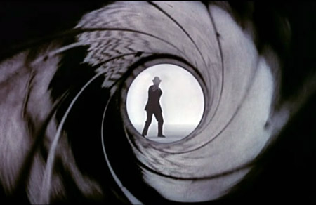 El punto de partida consiste básicamente en un mismo motivo de acción repetido hasta el infinito a lo largo de los años (convengamos en que la reiteración es uno de los atractivos más representativos de la serie de Bond, desde la frase formal de presentación del agente secreto hasta el martini seco, «agitado, pero no revuelto», que bebe en cada película): la entrada a cuadro del agente 007 atravesando lateralmente la imagen en blanco y negro, su seguimiento a través de la mira del cañón de un revólver, el repentino giro a 90º del espía británico para disparar a cámara –emulando el gesto de aquel pistolero que descargaba su arma contra los primeros espectadores de cine en Asalto y robo a un tren (1903), de Edwin S. Porter–, el baño de sangre que inunda la imagen desde la parte superior del cuadro y virándola hacia el color, la posterior irrupción de siluetas femeninas que bailan sensualmente a contraluz con ocasionales destellos de formas geométricas y colores primarios, todo esto de la mano de la célebre spy-guitar del leitmotiv musical creado por John Barry y la canción a cargo de la estrella vocal de turno, que supo incluir desde el vigor felino de Shirley Bassey hasta el esperpento de voces sampleadas de Madonna, pasando por los esplendorosos aportes de Garbage, Tina Turner, Paul McCartney o Nancy Sinatra. Lo que muchos desconocen es que, al menos durante las tres primeras películas, la aparición del agente secreto en estas presentaciones no corrió a cuenta del actor Sean Connery sino de un doble llamado Bob Simmons.