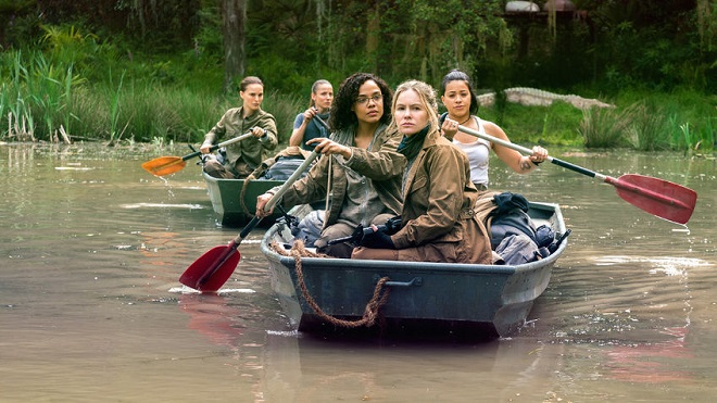 En un segundo momento, el personaje de Lena es conducida a una base secreta donde la doctora Ventress (Jennifer Jason Leigh) le explica la existencia de lo que llaman “el resplandor” (“the shimmer”), un lugar misterioso en el que las cosas no son lo que parecen y que, poco a poco, va creciendo. Las dos, junto con otras tres científicas, Cass Sheppard (Tuva Novotny), Anya Thorensen (una irreconocible Gina Rodriguez) y Josie Radek (Tessa Thompson), se adentrarán en esa zona misteriosa para tratar de encontrar el origen de la distorsión (al parecer, de tipo alienígena) y algunas respuestas, ya que las anteriores expediciones militares, todas ellas masculinas, han desaparecido en su interior sin dejar rastro. La creación de ese espacio, de esa “Zona” (¿de qué otra cosa habla, si no, Stalker, e incluso Solaris?), es lo más interesante de Aniquilación, así como la personalidad y las motivaciones de cada una de las componentes de la expedición.