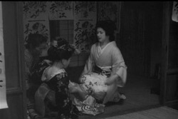 Tuve la posibilidad de percibir el cálido extrañamiento encandilador que me ocasionaron los melodramas en blanco y negro de Mizoguchi, a través de cuatro de sus títulos: Elegía de Osaka/Elegía de Naniwa (Naniwa erejî, 1939), La historia del último crisantemo/La historia de los crisantemos tardíos (Zangiku monogatari, 1939), La señorita Oyu (Oyû-sama, 1951) y Los músicos de Gion/Una Geisha (Gion bayashi, 1952), un recorte surtido aunque acotado que sirvió de adecuado y tímido preludio a un futuro acercamiento más profundo y exhaustivo hacia una filmografía, a través de su flanco menos reconocido.