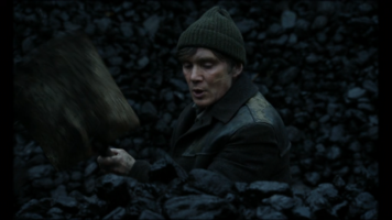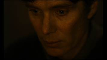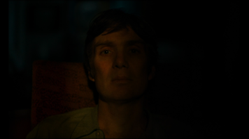 Pero también medios técnicos, como la iluminación o el enfoque, y éste sobre todo para el primer plano, y en especial sobre el rostro de Cillian Murphy. Como hemos apuntado, son innumerables los primeros planos sobre el rostro paralizado de Bill, en ocasiones prácticamente catatónico.