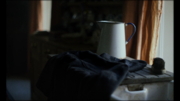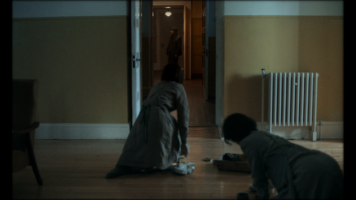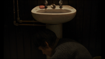 Él se ha limpiado las manos. Ella aún tiene adherido el sucio polvo de la carbonera. El plano dividido en dos nos muestra a una joven quizá agradecida y reconocida, dulcemente iluminada, mientras él queda oculto tras el tabique. Una redención individual es un acto heroico, pero insuficiente. Lo expresa el pequeño cepillo individual recortándose contra la oscura sombra. Poco puede lavar de la enormidad del pecado colectivo de un país y una época.