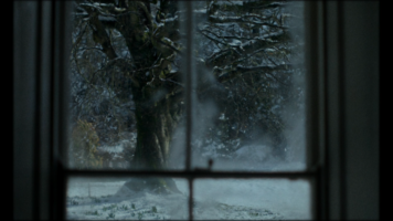 Aquí el correlato de la catatonia de Bill es el ruido blanco en la pantalla de televisión una vez interrumpidas todas las emisiones. Es el síntoma que salta como un resorte hasta el trauma. Cinematográficamente, el fotograma de esa pantalla se va a enlazar a la ventana nevada de su propia infancia en casa de la señora Wilson, esto es, el flash back de la nieve que mencionábamos más arriba.