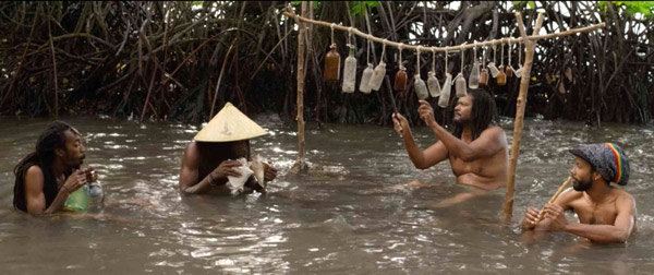La historia que se nos cuenta, literalmente, tiene que ver con una cabra, extraordinario personaje que calladamente ejerce su protagonismo, en esta vida y en los otras, en tierra o en el mar, en movimiento y en quietud. Los dos hermanos quedan atrapados por este personaje que los acompaña en un día de aventuras. Y nosotros presenciamos una especie de película de carretera en moto por los pintorescos lugares de la isla, junto con los dos hermanos y la cabra, en la cual nos acercamos a la música, al mar, a las montañas, a las costumbres, a la vida familiar, a la forma en que funciona la autoridad, a los negocios, a las distracciones, a las tradiciones populares ancestrales, que incluyen alguna pequeña dosis de brujería africana. Ese inglés que se habla, que tiene entonaciones musicales y desviaciones criollas, le da un sentido único al filme, lo mismo que el dinero que se usa en los muchos negocios que ocurren, con cuya unidad de medida se van los espectadores acostumbrando, ya que todos los movimientos pecuniarios del filme están tasados a base de pequeñas transacciones en “gordions”, incluso cuando se trata de operaciones de trueque.
