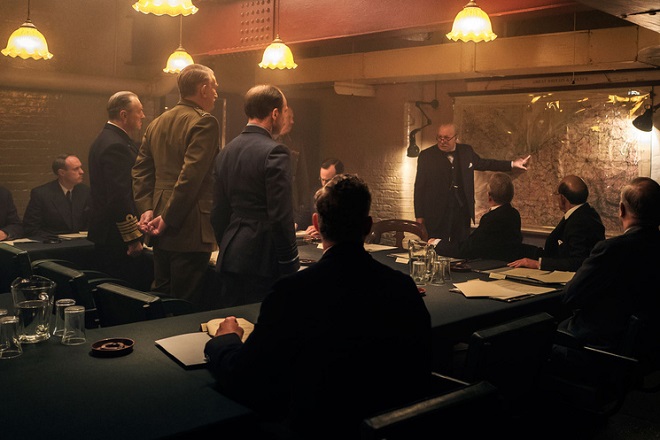 En realidad, la película de Wright supone la visión política de un episodio que ya hemos visto recientemente en la gran pantalla desde una perspectiva bélica, la que nos ofreció Christopher Nolan en Dunkerque (Dunkirk, 2017), o desde una perspectiva más cotidiana, como la que aparecía en Su mejor historia (Their Finest, Lone Scherfig, 2016), y eso sin contar con que hace pocos meses también se estrenó Churchill (Jonathan Teplitzky, 2017), un título que se centraba sobre todo en las dudas que tenía el Primer Ministro británico sobre el Desembarco de Normandía. En esa ocasión, Churchill era encarnado por un soberbio Brian Cox, sin duda lo mejor de la película.
