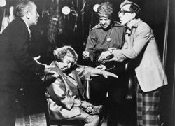 Fotograma_Broadway_Danny_RosePara muchos críticos, Zelig (1983) es una de las obras maestras de Woody Allen, una película que supone un auténtico hallazgo de fotografía y montaje, ya que en ella, en clave de falso documental o mockumentary, el propio Allen interpreta a un auténtico hombre camaleón, capaz de mimetizarse con el entorno social que le rodea. Ahora bien, acaso el título que mejor refleja ese mundo es Broadway Danny Rose (1984), en la que Woody Allen encarna a un desastroso –pero entregado– representante de artistas de tercera categoría, cuyos, representados, en palabras de Jorge Fonte, “son tan particulares como él: un bailarín de claqué con una sola pierna, un xilofonista ciego, un malabarista manco” y un hipnotizador que, en un momento dado de su actuación, es incapaz de despertar a la anciana judía que acaba de hipnotizar, lo que provoca una situación hilarante cuando Danny Rose trata de invitar al marido de la anciana para compensarle.