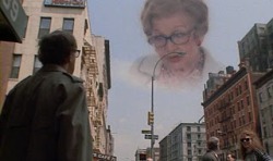 Fotograma_Edipo_reprimidoOtra referencia inexcusable a la hora de hablar del mundo del espectáculo en el cine de Woody Allen es el mediometraje Edipo reprimido (Oedipus Wrecks), uno de los tres episodios que componen la película colectiva Historias de Nueva York (New York Stories, 1989), concretamente el tercero, tras Apuntes al natural (Life Lessons), dirigida por Martin Scorsese, y Vida sin Zoe (Life without Zoe), de Francis Ford Coppola. En Edipo reprimido, el abogado Sheldon Mills (Woody Allen) contempla cómo su controladora madre (Mae Questel) desaparece tras un truco de magia del gran Shandú (George Schindler), pero eso, lo que inicialmente supone un alivio, se convierte en pesadilla cuando la imagen de su madre aparece en el cielo de Manhattan y comienza a contarle a todo el mundo detalles humillantes de la vida de su hijo. Para solucionar la situación, Sheldon debe acudir a una vidente llamada Treva (Julie Kavner), de la que se acaba enamorando.