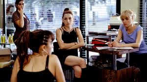 Si bien este momento ocurre en la casa de Caye, en el filme se nos presenta un escenario clave, la peluquería, como un espacio donde todas aquellas que ejercen la prostitución concurren con la misma peluquera, Gloria, quien además ocupa el lugar con mayor experiencia en el rubro y puede dar consejos a las demás. Allí socializan, es un espacio compartido, como sede de encuentro y de lógicas propias. Allí se critican a las mujeres que están fuera del local, en su mayoría inmigrantes, vistas como competencia, ya que comienzan a instalarse en el territorio público de la plaza frente al local, en Madrid. Caye es la que entabla vínculo con una de ellas, Zulema, e incluso le pide que la peine, como acto de confianza; de esta forma, Caye es quien cruza ese límite social e imaginario entre unas y otras.